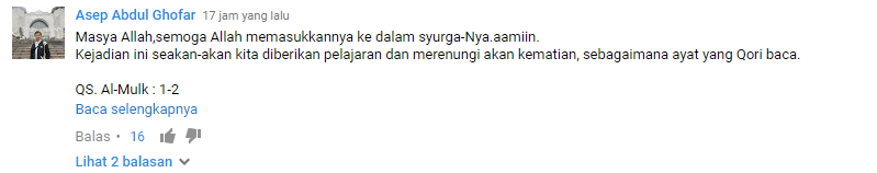 Belum jelas siapakah qari itu. Akan tetapi mari kita doakan semoga beliau khusnul khotimah. Aamiin..